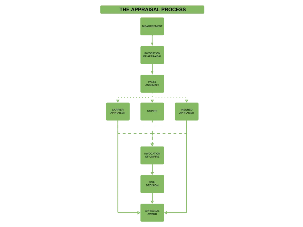 In situations where there is a disagreement between you and your insurance company regarding the loss amount or damage extent in a claim settlement, and negotiations prove unproductive, you have the option to resolve the claim by invoking an appraisal clause outlined by your insurance company.